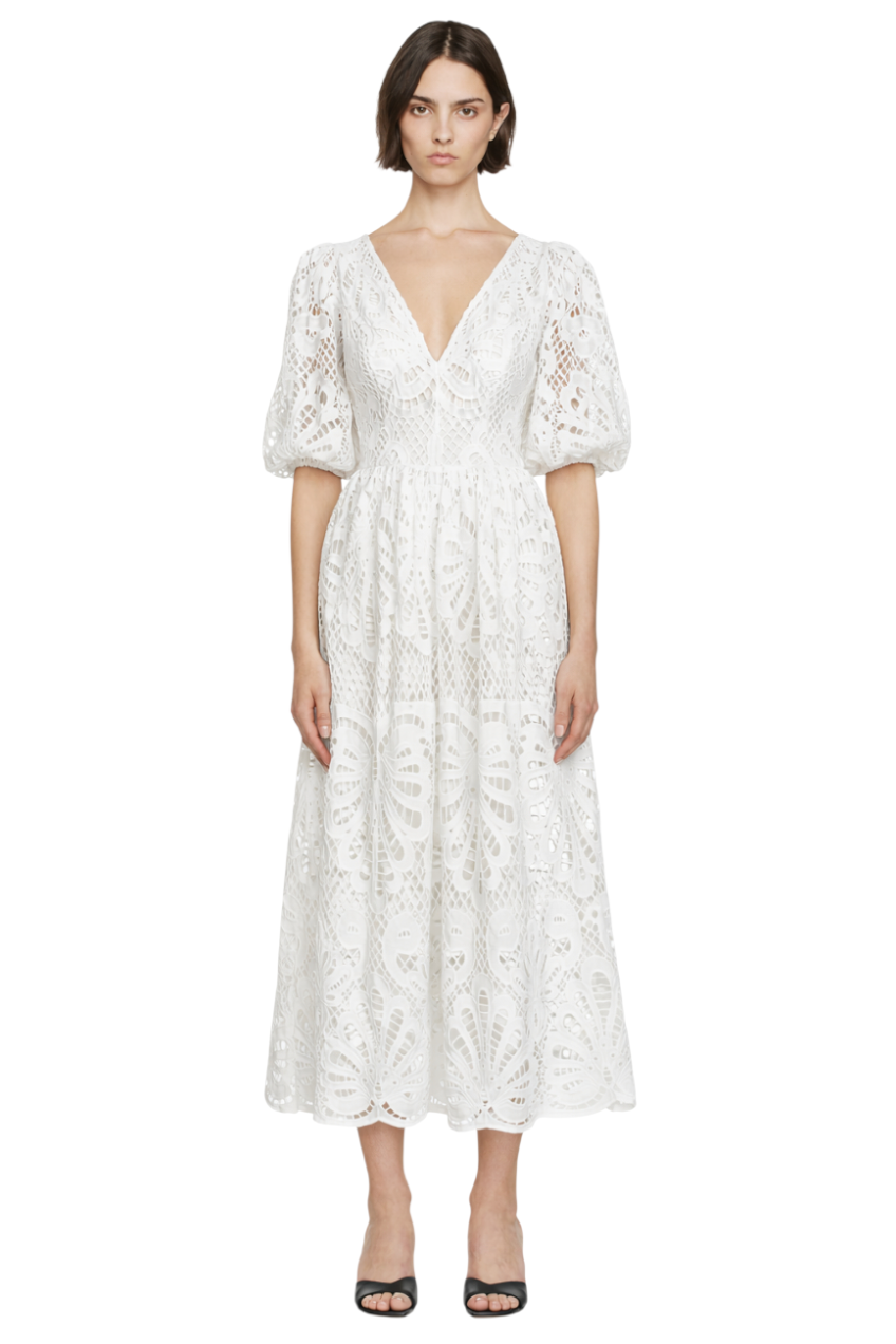 Cutout Back Lace Crochet V-Neck Dress