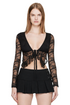 Tied Plunge Long Sleeve Lace Cropped Shirt